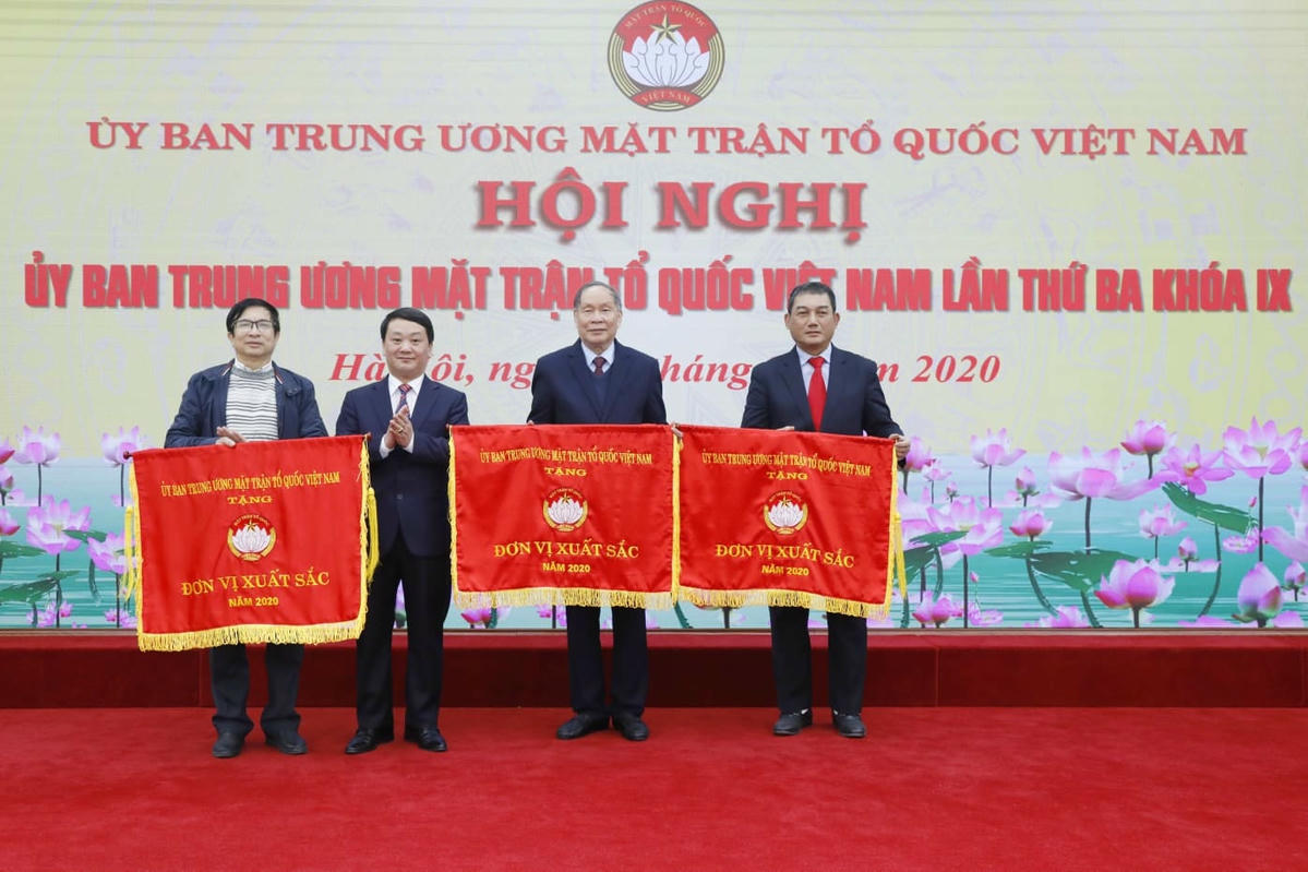 UBTƯ MTTQ Việt Nam cũng trao 11 cờ xuất sắc toàn diện cho Ủy ban MTTQ Việt Nam các tỉnh, thành phố; 16 cờ xuất sắc cho Ủy ban MTTQ Việt Nam các tỉnh, thành phố; 6 cờ xuất sắc cho Tổ chức thành viên và 36 Bằng khen cho Ủy ban MTTQ Việt Nam các tỉnh, 17 bằng khen cho Tổ chức thành viên vì có thành tích xuất sắc trong triển khai công tác Mặt trận trong năm 2020.