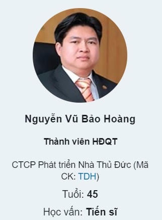 Ông Nguyễn Vũ Bảo Hoàng (45 tuổi, ngụ Quốc lộ 13, phường Hiệp Bình Chánh, tạm trú chung cư Catavil Premier, phường An Phú, quận 2) là Tiến sĩ quản trị kinh doanh, thành viên HĐQT kiêm Tổng giám đốc Công ty Cổ phần Phát triển Nhà Thủ Đức (Thuduc House) và Phó Chủ tịch HĐQT Công ty Cổ phần Ngoại thương và Phát triển Đầu tư TP.HCM (Fideco).
