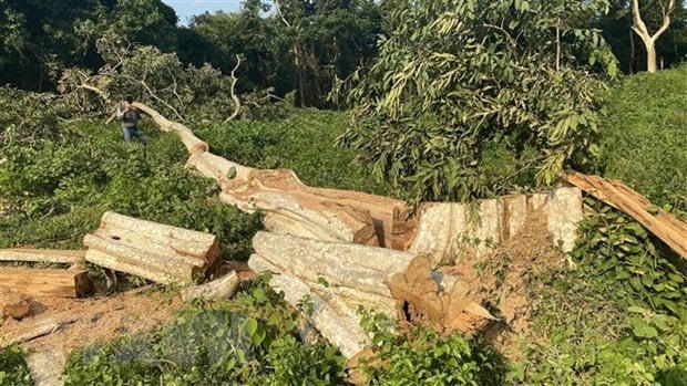 Bàn bạc, thống nhất xong, Tuấn yêu cầu Toản chuyển vào tài khoản vợ mình số tiền 50 triệu đồng rồi cho khai thác gỗ. Chuyển xong số tiền, các ngày 17, 18/9/2022, Toản cho người đốn hạ 22 cây gỗ lim trong khu đất với tổng khối lượng trên 28 m3 gỗ. Toản bán một số cây cho người khác và một số cây mang về nhà cất giữ.
