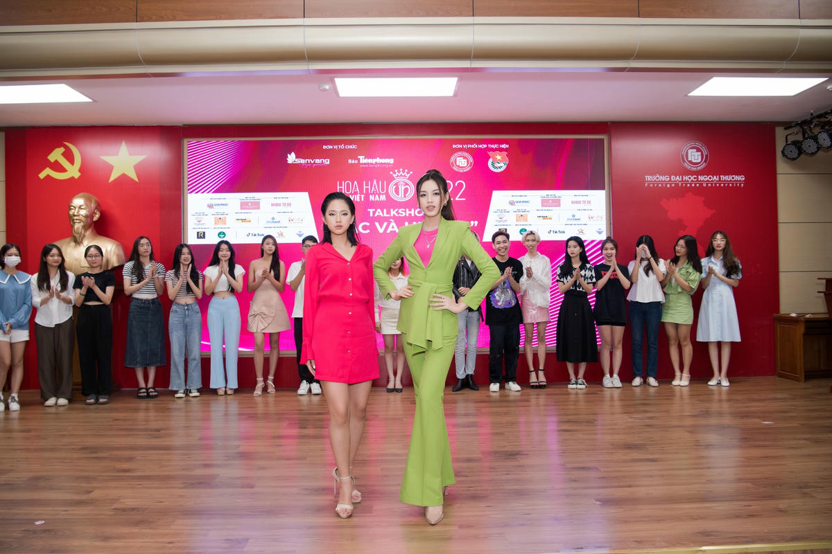 Nhằm giải đáp những thắc mắc của các bạn sinh viên về cuộc thi Hoa hậu Việt Nam 2022, đương kim Hoa hậu Đỗ Thị Hà đã mang đến nhiều câu chuyện truyền cảm hứng. Đồng hành trong buổi tuyển sinh này còn có “Người đẹp thể thao” Phù Bảo Nghi.