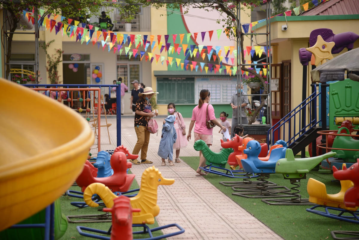 Sau gần một năm phải nghỉ tại nhà vì dịch bệnh, ngày 13/4, nhiều trẻ em lứa tuổi mầm non được trở lại trường học. Không khí đông vui, náo nức dường như chỉ có tại những dịp đầu năm đã được tái hiện khi các em nhỏ quay trở lại trường học.