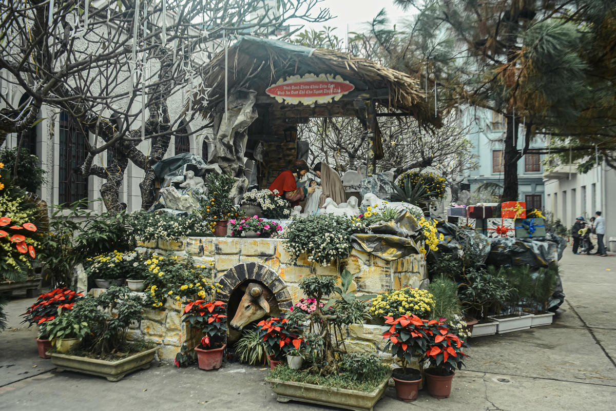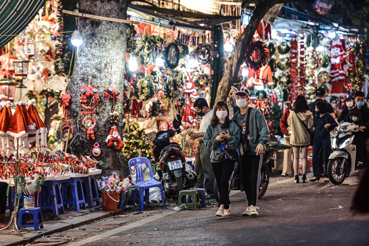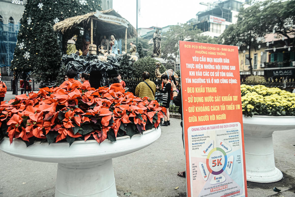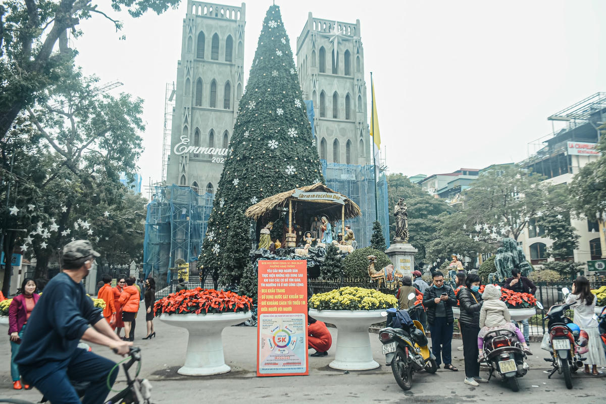 Do dịch Covid-19, năm nay không khí Noel tại Hà Nội có phần ảm đạm hơn những năm trước. Các nhà thờ, xóm đạo cũng được bày trí đơn giản hơn so với mọi năm để tránh thu hút đông đảo các bạn trẻ đến tham quan, chụp ảnh.