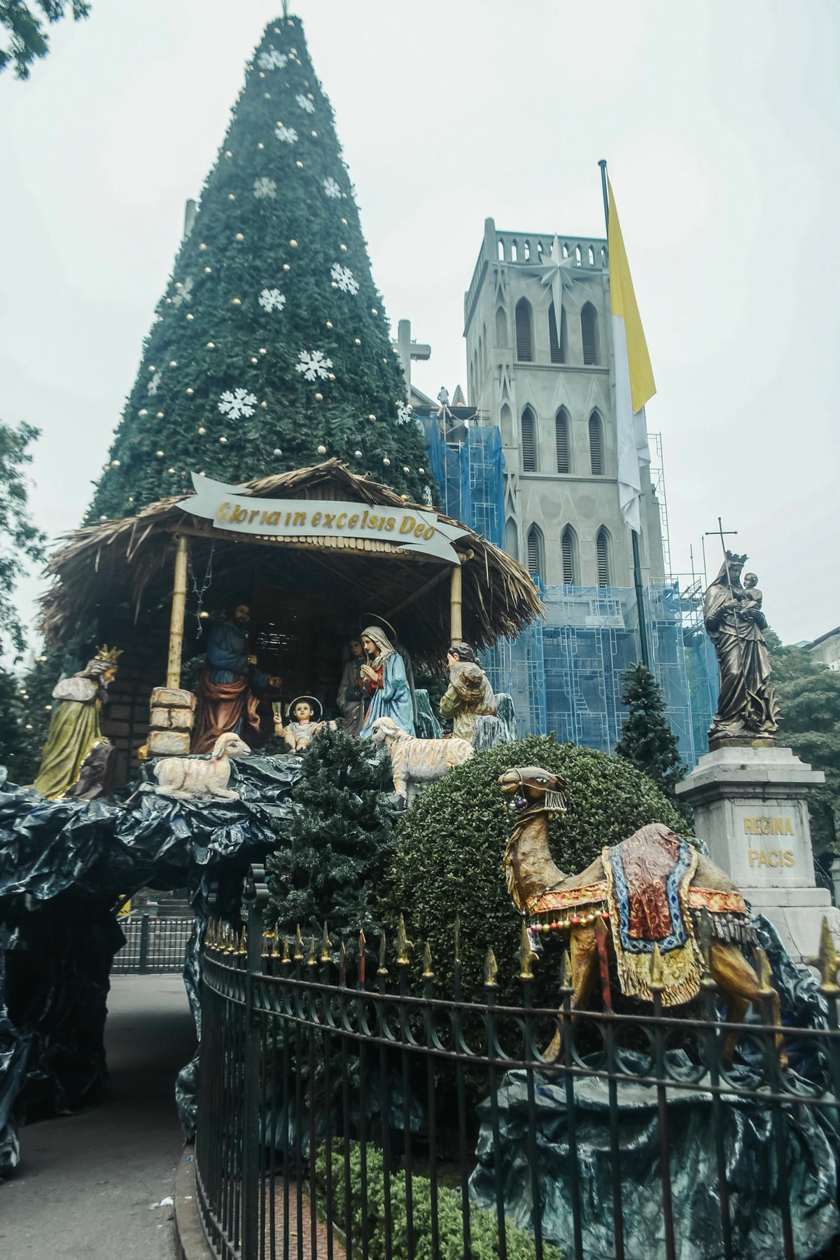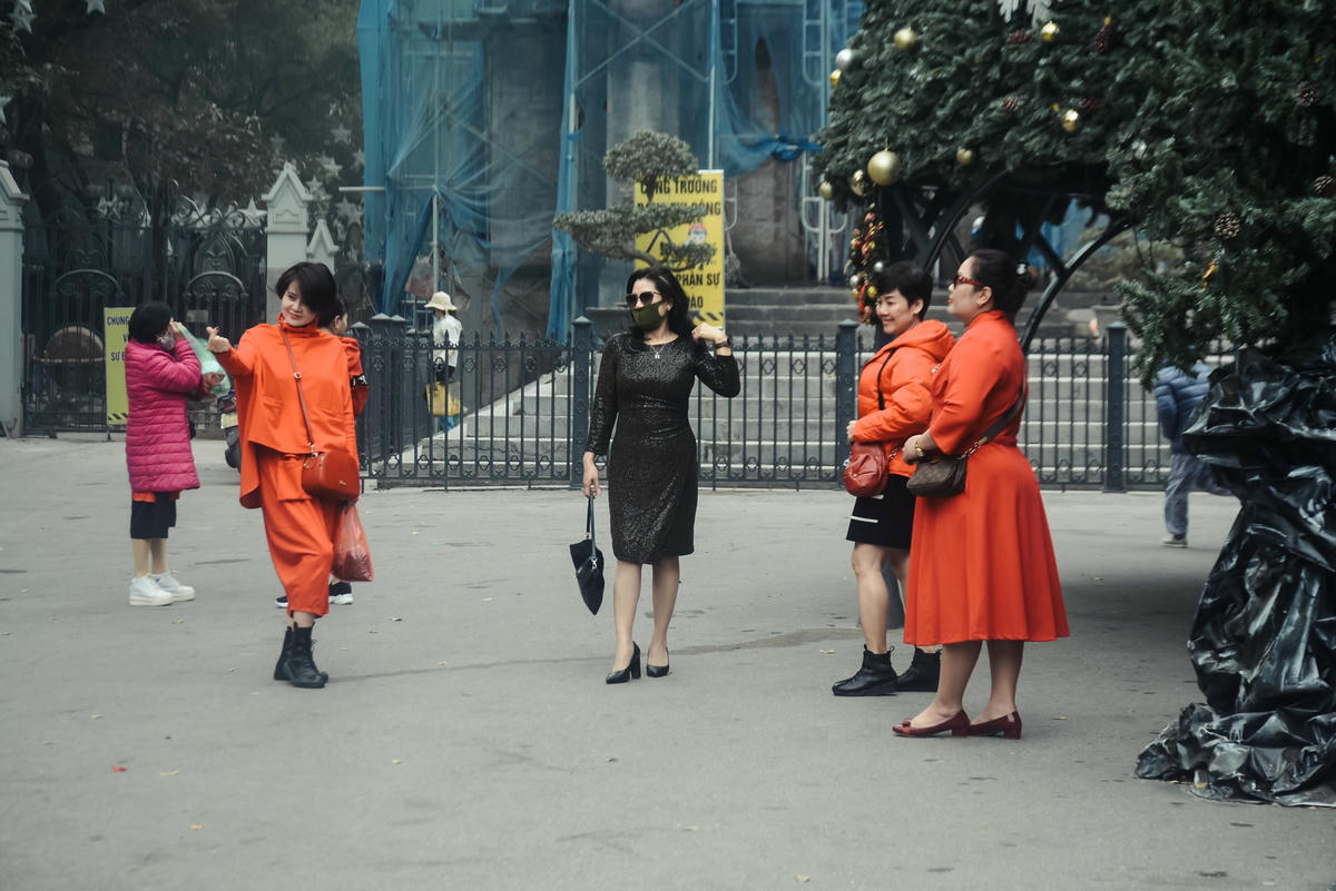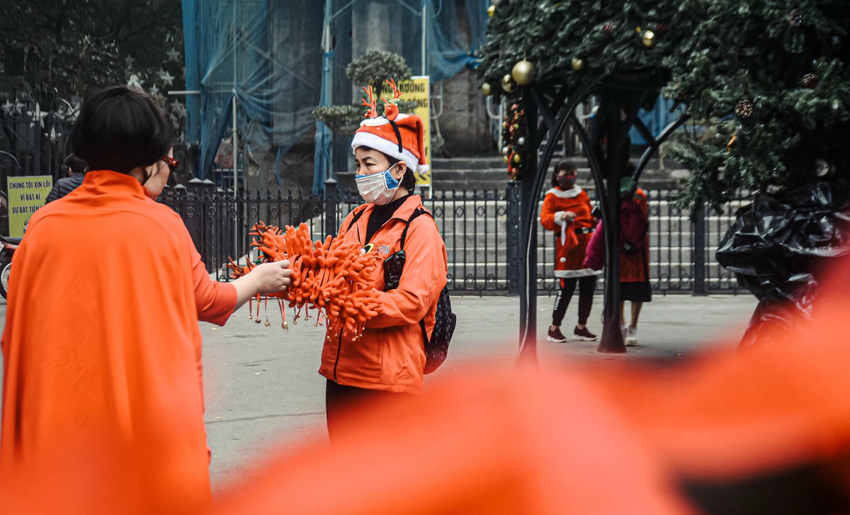 Do dịch Covid-19, năm nay không khí Noel tại Hà Nội có phần ảm đạm hơn những năm trước. Các nhà thờ, xóm đạo cũng được bày trí đơn giản hơn so với mọi năm để tránh thu hút đông đảo các bạn trẻ đến tham quan, chụp ảnh.