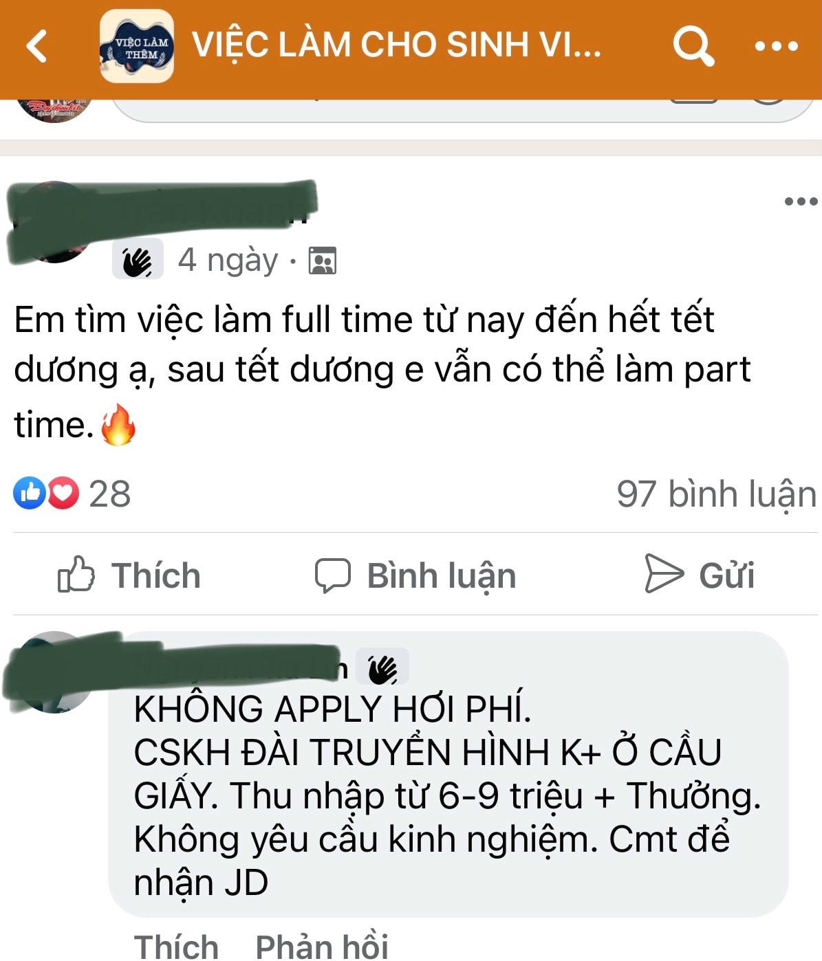 Một số sinh viên cũng cho hay, do công khai thông tin cá nhân trên các hội nhóm mạng xã hội nên ngay sau đó, các em liên tục nhận các tin nhắn, cuộc gọi mời chào vay tín dụng, mở thẻ ngân hàng, làm tiếp thị, tiếp khách tại quán karaoke…