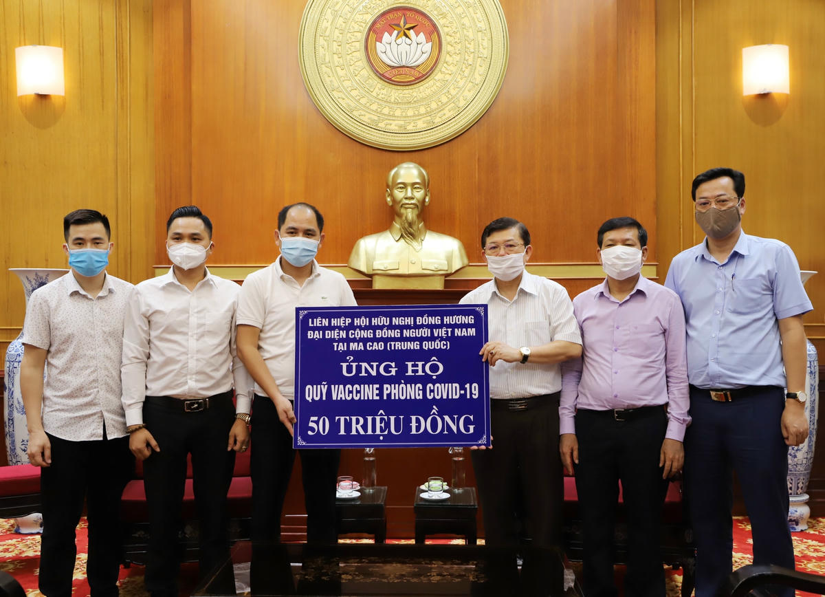Trân trọng cảm ơn tình cảm của Liên hiệp Hội hữu nghị đồng hương - đại diện cộng đồng người Việt Nam tại Macau, Phó Chủ tịch Nguyễn Hữu Dũng cho biết, sự quyên góp của kiều bào ở nước ngoài nói chung và Hội hữu nghị đồng hương - đại diện cộng đồng người Việt Nam tại Macau nói riêng trong thời gian qua đã tạo sức lan tỏa mạnh mẽ trong nhân dân, dù đang công tác, học tập hay làm ăn ở ngoài nước nhưng luôn một lòng hướng về quê hương, đóng góp nguồn lực cùng với Đảng, Nhà nước, Chính phủ Việt Nam đẩy lùi dịch bệnh.