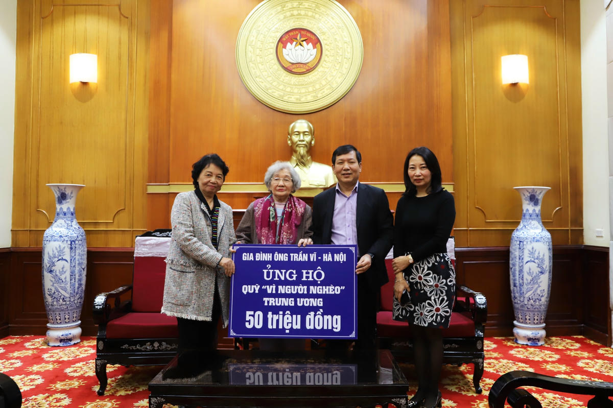 * Cùng ngày, ông Trần Văn Sinh, Trưởng ban Phong trào UBTƯ MTTQ Việt Nam đã tiếp nhận ủng hộ đồng bào miền Trung từ gia đình ông Trần Vĩ (Hà Nội) số tiền 50 triệu đồng.