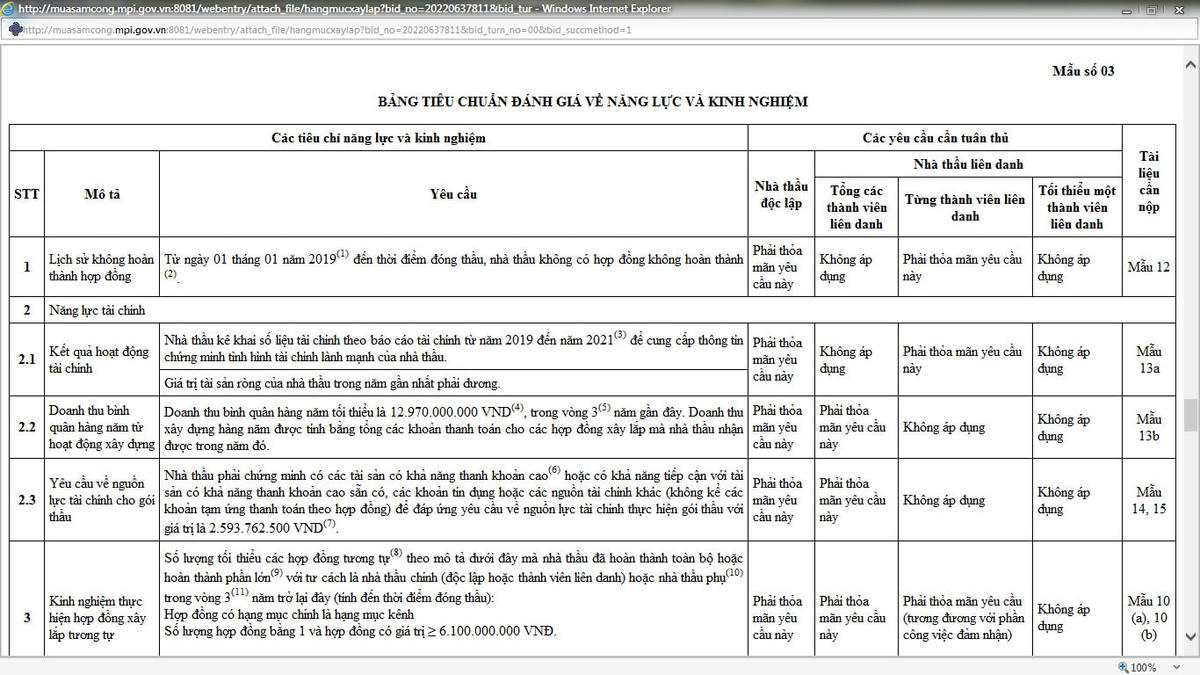 Thời gian gần đây Công ty TNHH Đầu tư và phát triển Bình Minh được công bố trúng nhiều gói thầu trong đó có gói thầu Thi công xây lắp công trình thuộc dự án xây dựng nhà họ 2 tầng 8 phòng và các hạng mục phụ trợ trường tiểu học xã Lưu Phương huyện Kim Sơn có số doanh thu thực tế thấp hơn doanh thu yêu cầu của E-HSMT.