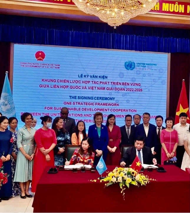 Chiều ngày 11/8, tại Hà Nội, Bộ trưởng Bộ Kế hoạch và Đầu tư Nguyễn Chí Dũng và điều phối viên thường trú của LHQ tại Việt Nam, bà Pauline Tamesis, đã ký Văn kiện Khung Chiến lược hợp tác phát triển bền vững giai đoạn 2022-2026 giữa Chính phủ Việt Nam và các cơ quan thường trú và không thường trú của LHQ tại Việt Nam.