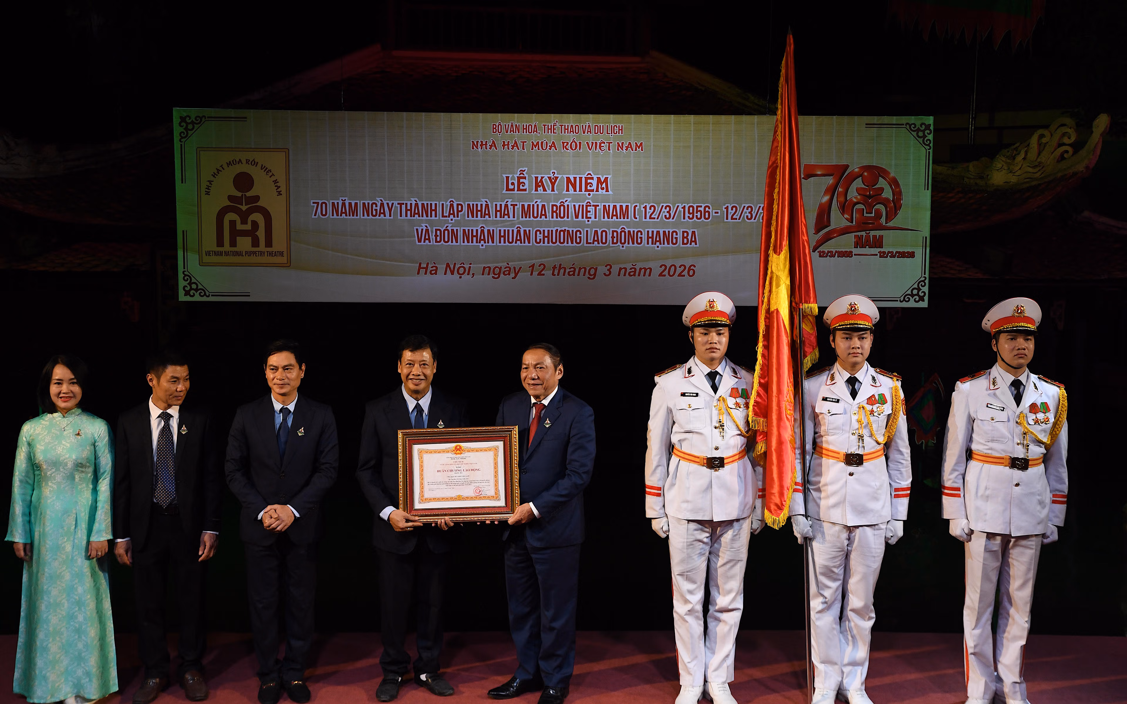 Tối 12/3, tại Hà Nội, Nhà hát Múa rối Việt Nam tổ chức Lễ kỷ niệm 70 năm ngày thành lập (1956–2026) và đón nhận Huân chương Lao động Hạng Ba. Dấu mốc này không chỉ ghi nhận chặng đường bền bỉ gìn giữ nghệ thuật múa rối dân tộc, mà còn khẳng định vai trò của đơn vị như một trung tâm sáng tạo và lan tỏa nghệ thuật rối hàng đầu cả nước.