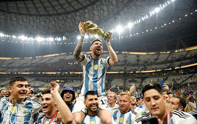 Trong đêm Lusail, trước sự chứng kiến của gần 90.000 khán giả, M10 đã chạm tay vào chiếc cúp, hạnh phúc trao nụ hôn cho “crush” mà anh theo đuổi suốt gần 20 năm qua, cùng đồng đội giơ cao biểu tượng số 1 bóng đá thế giới trong sự phấn khích và vui sướng tột độ.