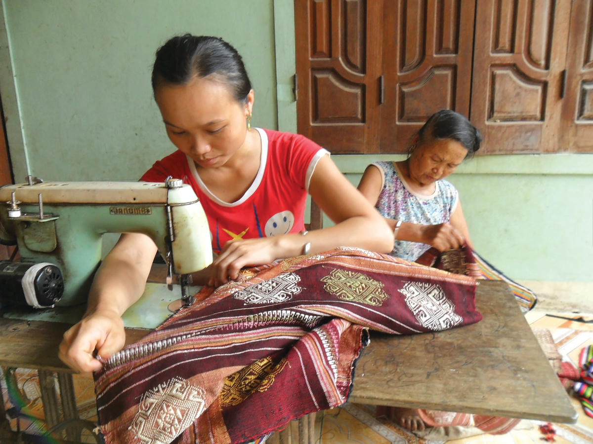 Bà Sầm Thị Bích, thành viên HTX dệt thổ cẩm Hoa Tiến cho biết, đã là con gái Thái thì phải biết dệt thổ cẩm và thêu thùa. Họ thường tự tay làm những chiếc váy, bộ chăn, đệm, những chiếc khăn Piêu… và thổ cẩm đã trở thành một phần không thể thiếu trong đời sống vật chất và tinh thần của chị em dân tộc Thái.