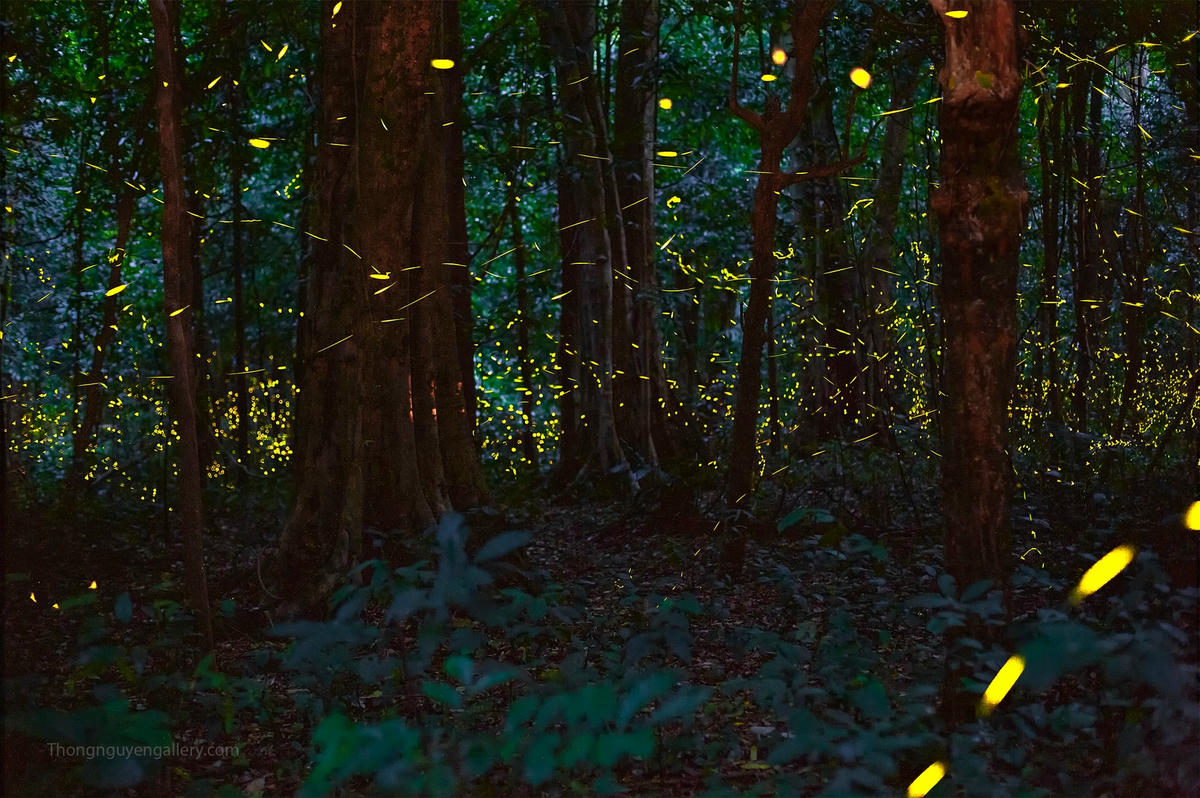 Ngày ở Cúc Phương đã vậy, đêm về hòa trong bản nhạc của tiếng chim gù, vượn hú, ếch kêu là ánh đèn lấp lánh của hàng nghìn con đom đóm. Những đốm sáng li ti, lấp lánh, mê mẩn. Từng đường sáng uốn lượn tựa như dải ngân hà.