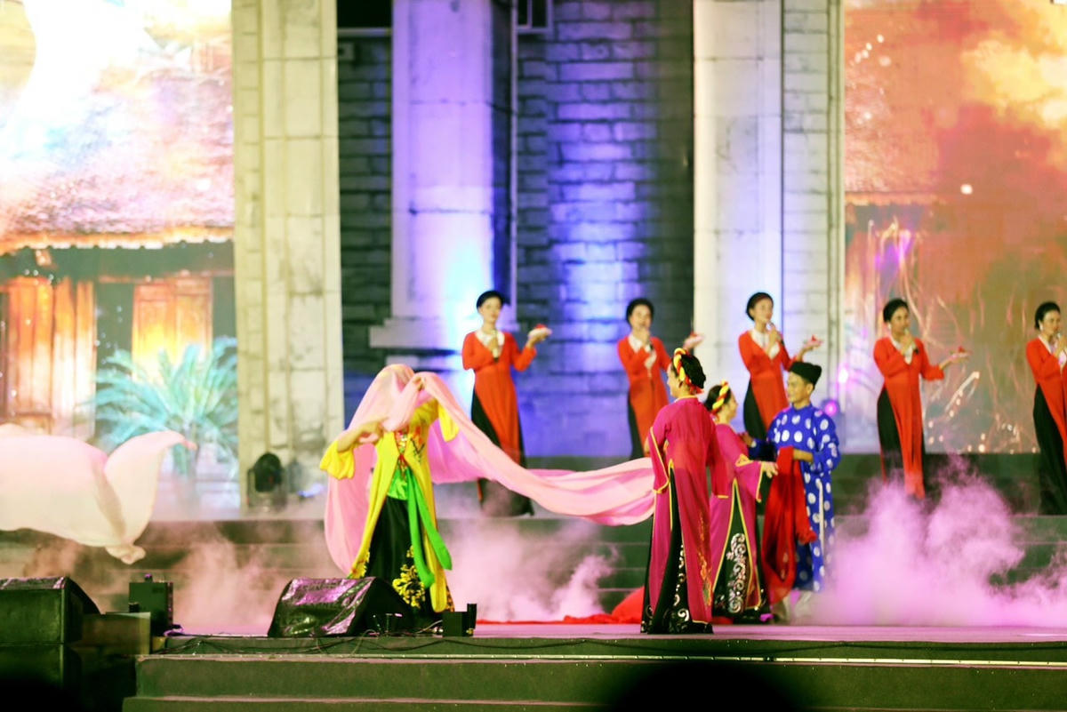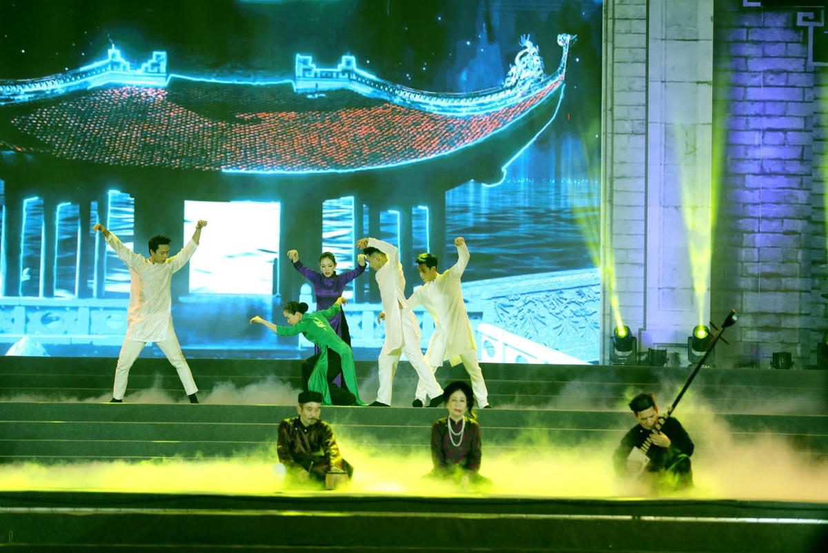 Trước khi vào phần lễ là màn khai từ nghệ thuật với chủ đề “Linh thiêng nguồn cội”. Từ ý tưởng và khai diễn trên sân khấu, Tổng đạo diễn đã khéo léo khắc họa được câu chuyện về Con Rồng Cháu Tiên, về bản sắc văn hóa của người Việt cổ. Lịch sử hình thành, cội nguồn dân tộc được khắc hoạ sáng tạo với các tổ hợp múa tạo hình rồng trên nền trống đồng Đông Sơn và cánh chim Lạc. Âm nhạc thôi thúc, trầm hùng, hào sảng trên chất liệu của Xoan kết hợp ánh sáng lung linh, huyền ảo miêu tả sự giao hoà của đất trời khi Lạc Long Quân gặp Âu Cơ đã ngay lập tức hấp dẫn khán giả đi vào một câu chuyện lịch sử, văn hóa theo suốt chiều dài đất nước.