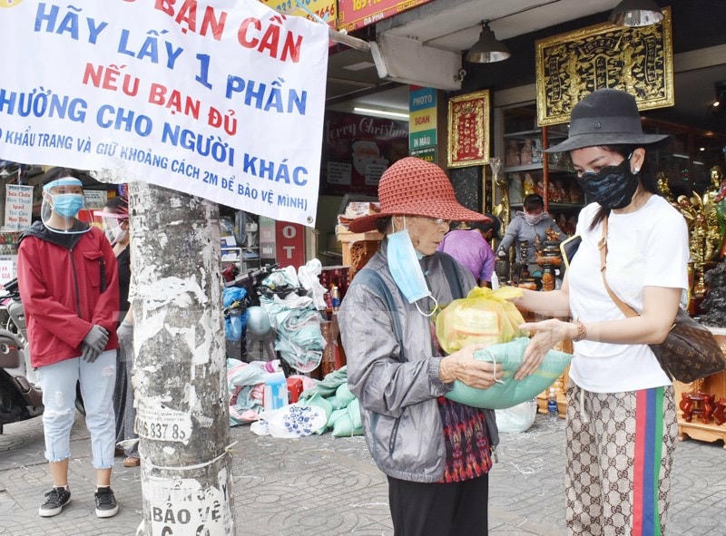 Chị Võ Thị Thùy Trang, một mạnh thường quân ở Sài Gòn cho biết: Ngoài nấu cơm phát miễn phí, vợ chồng chị còn ghi phiếu phát gạo cho người nghèo tại Quận 10, Phú Nhuận, cũng như gửi tặng gạo đến trại mồ côi, mái ấm nhà mở, chùa để phát gạo cho người nghèo.
