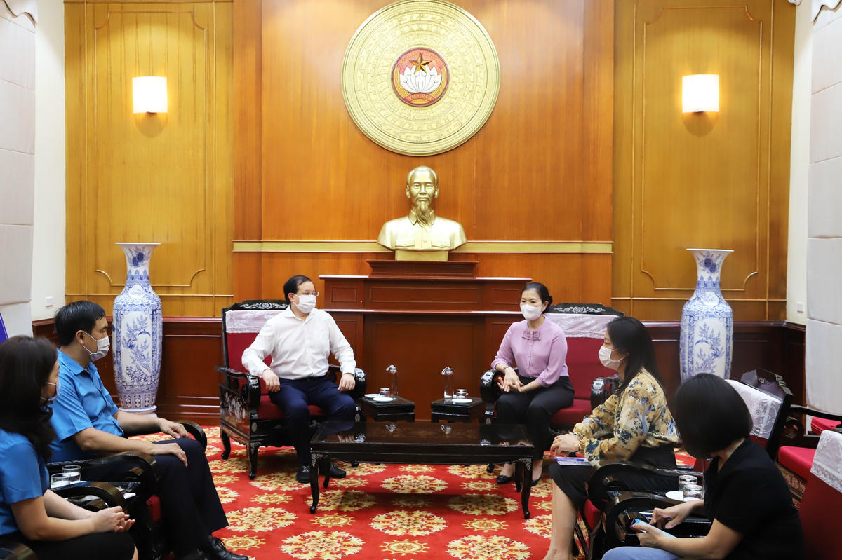 "Mong lãnh đạo bộ tiếp tục quán triệt trong ngành nâng cao mức độ phòng dịch, cùng đồng lòng quyết tâm để vượt qua giai đoạn gian khó này", Phó Chủ tịch Trương Thị Ngọc Ánh nói.