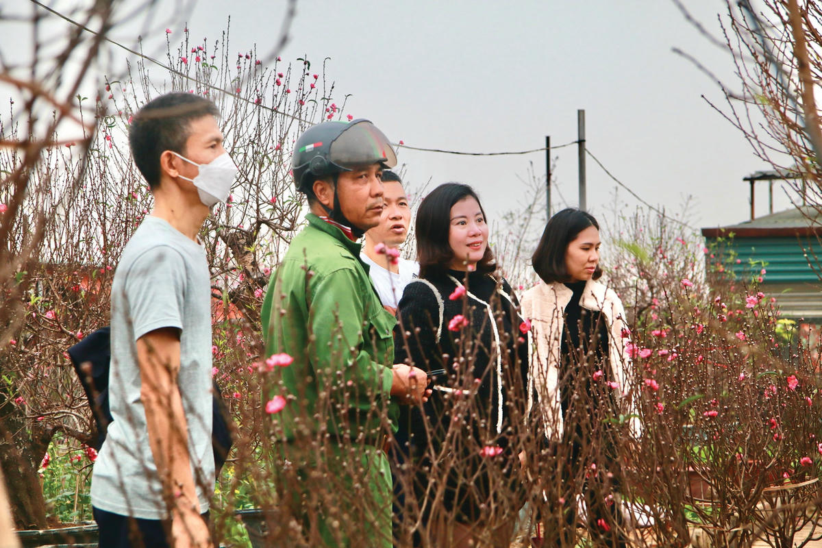 Những ngày này, không khí mua bán tại vườn đào Nhật Tân, vườn quất Tứ Liên (quận Tây Hồ, Hà Nội) sôi động, tấp nập.