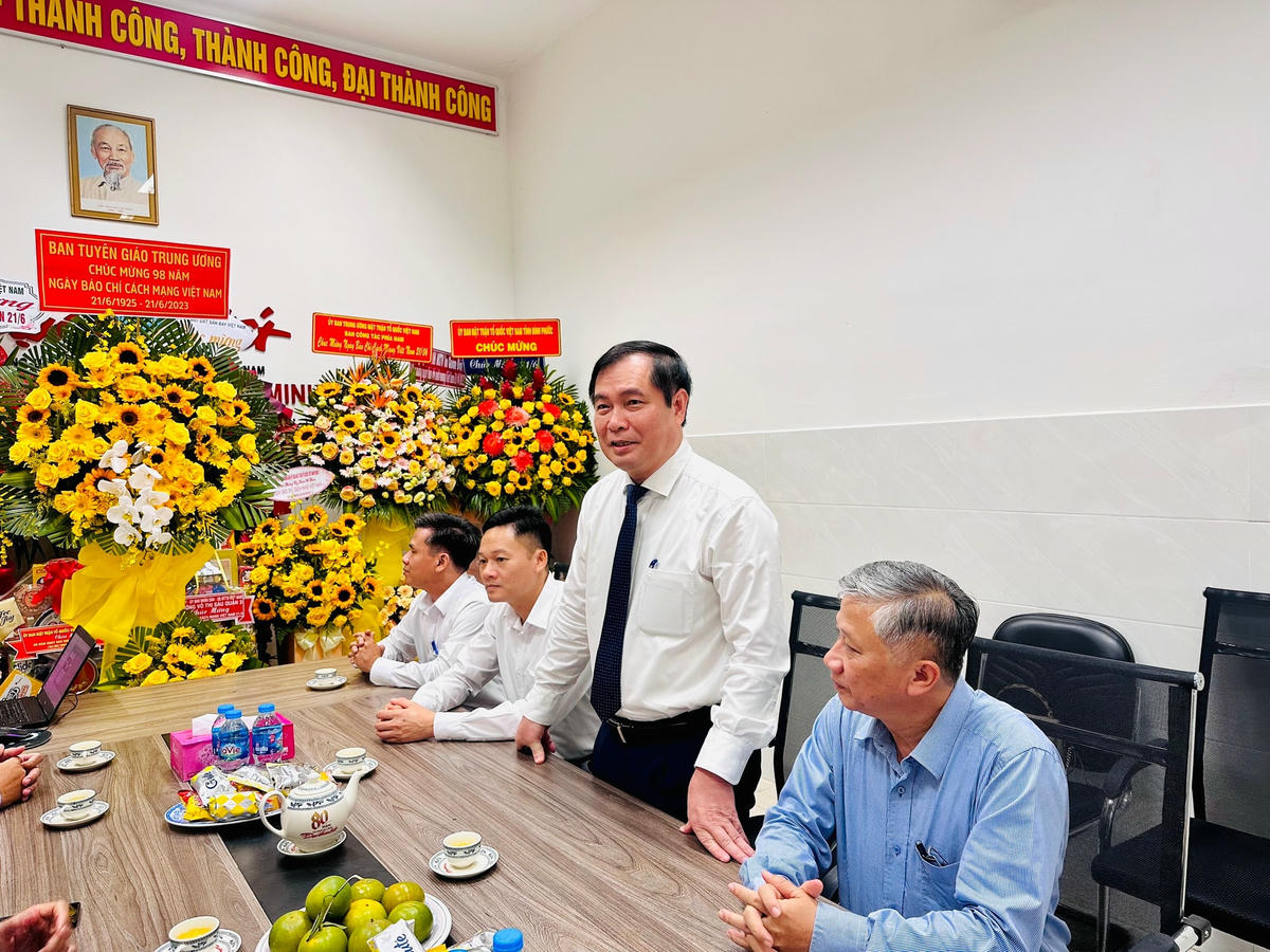 Dịp này, ông Phan Xuân Thủy, Phó Trưởng ban Tuyên giáo Trung ương thay mặt Ban Tuyên giáo Trung ương gửi tặng lẵng hoa tươi thắm chúc mừng tập thể cán bộ, phóng viên, nhân viên của Ban Đại diện Báo Đại Đoàn Kết tại TP HCM nhân dịp kỷ niệm 98 năm ngày Báo chí cách mạng Việt Nam (21/6/1925 - 21/6/2023).