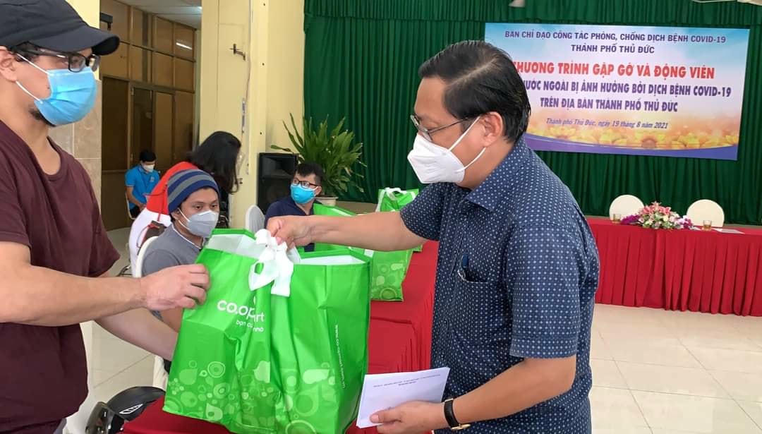 Chiều 19/8, Ban Chỉ đạo phòng, chống dịch Covid - 19 thành phố Thủ Đức (TP HCM) tổ chức gặp gỡ và động viên người nước ngoài bị ảnh hưởng bởi dịch bệnh Covid - 19 đang sinh sống trên địa bàn thành phố Thủ Đức.