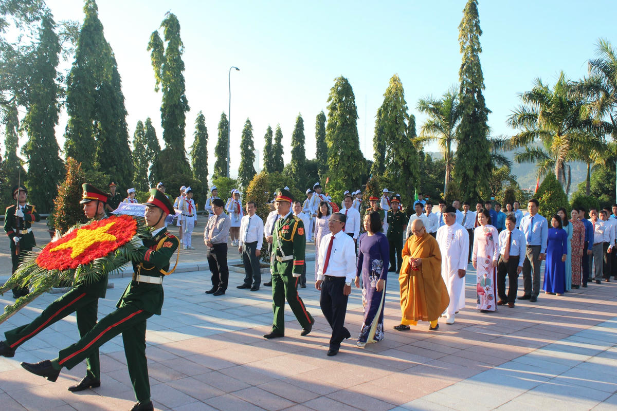 Đoàn đại biểu Ban Chấp hành Đảng bộ tỉnh Khánh Hòa do ông Nguyễn Hải Ninh - Ủy viên Trung ương Đảng, Bí thư Tỉnh ủy Khánh Hòa dẫn đầu, vòng hoa mang dòng chữ: Đảng, Nhà nước, Nhân dân ghi nhớ công ơn các liệt sĩ; đoàn đại biểu HĐND, UBND tỉnh Khánh Hòa do ông Nguyễn Tấn Tuân - Phó Bí thư Tỉnh ủy, Chủ tịch UBND tỉnh dẫn đầu, vòng hoa mang dòng chữ: Đời đời nhớ ơn các Anh hùng liệt sĩ; đoàn đại biểu Uỷ ban MTTQ Việt Nam tỉnh Khánh Hòa do ông Trần Ngọc Thanh - Chủ tịch MTTQ Việt Nam tỉnh Khánh Hòa, Trưởng ban Dân vận Tỉnh ủy dẫn đầu, vòng hoa mang dòng chữ: Tổ quốc ghi công các liệt sĩ. Tham dự lễ viếng còn có đoàn đại biểu của các lực lượng vũ trang tỉnh, đoàn đại biểu Thành ủy, HĐND, UBND, UBMTTQ Việt Nam TP. Nha Trang.