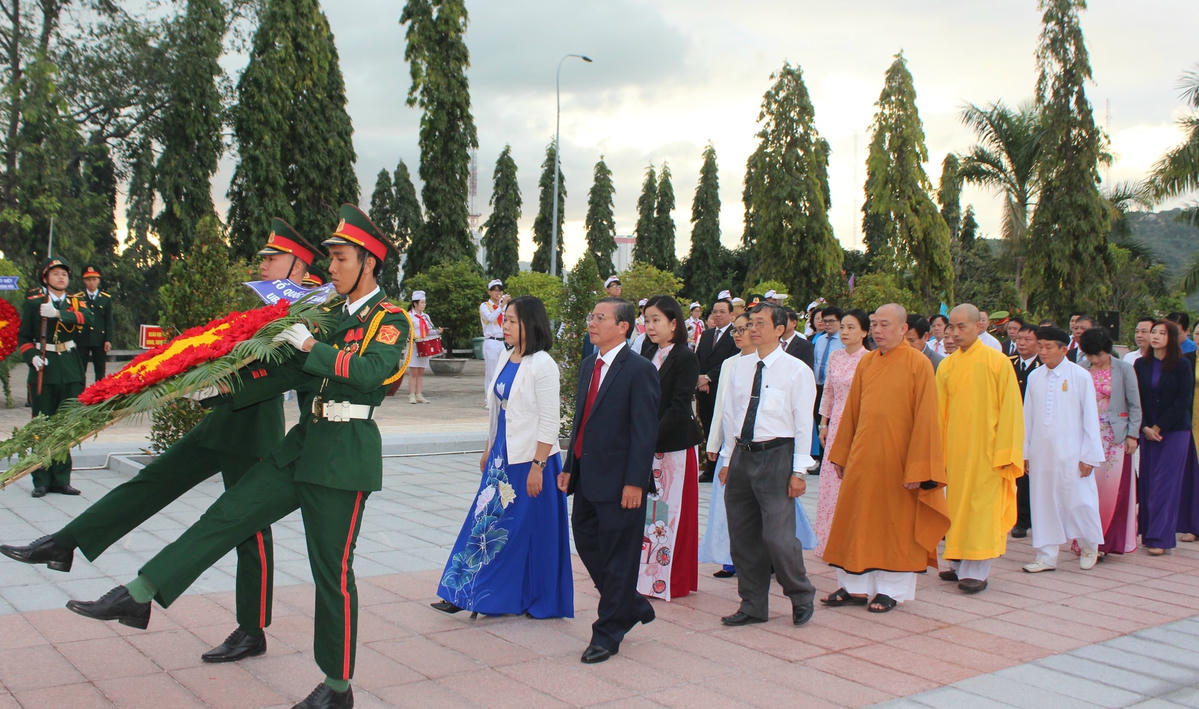 Theo đó, Đoàn đại biểu Ban Chấp hành Đảng bộ tỉnh Khánh Hòa do ông Nguyễn Hải Ninh - Ủy viên Trung ương Đảng, Bí thư Tỉnh ủy dẫn đầu, vòng hoa mang dòng chữ: Đảng, Nhà nước, Nhân dân ghi nhớ công ơn các liệt sĩ; đoàn đại biểu HĐND, UBND tỉnh Khánh Hòa do ông Nguyễn Tấn Tuân - Phó Bí thư Tỉnh ủy, Chủ tịch UBND tỉnh dẫn đầu, vòng hoa mang dòng chữ: Đời đời nhớ ơn các Anh hùng liệt sĩ; đoàn đại biểu Ủy ban MTTQ Việt Nam tỉnh Khánh Hòa do ông Trần Ngọc Thanh - Chủ tịch Ủy ban MTTQ Việt Nam tỉnh, Trưởng ban Dân vận Tỉnh ủy dẫn đầu, vòng hoa mang dòng chữ: Tổ quốc ghi công các liệt sĩ.