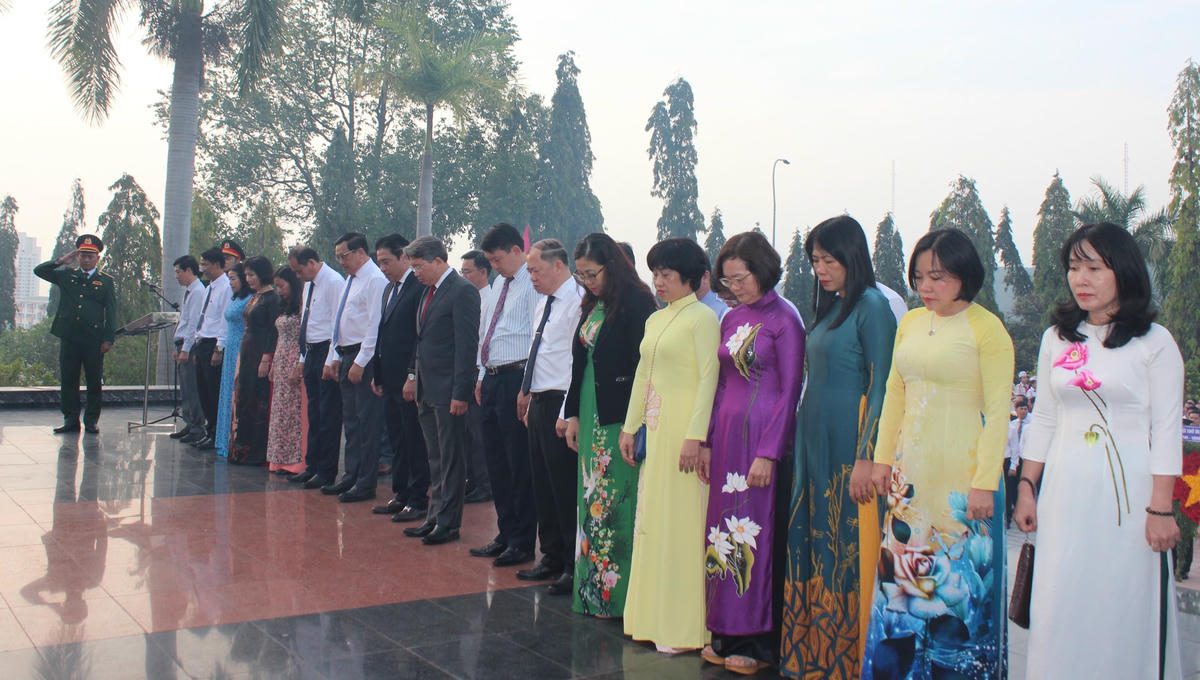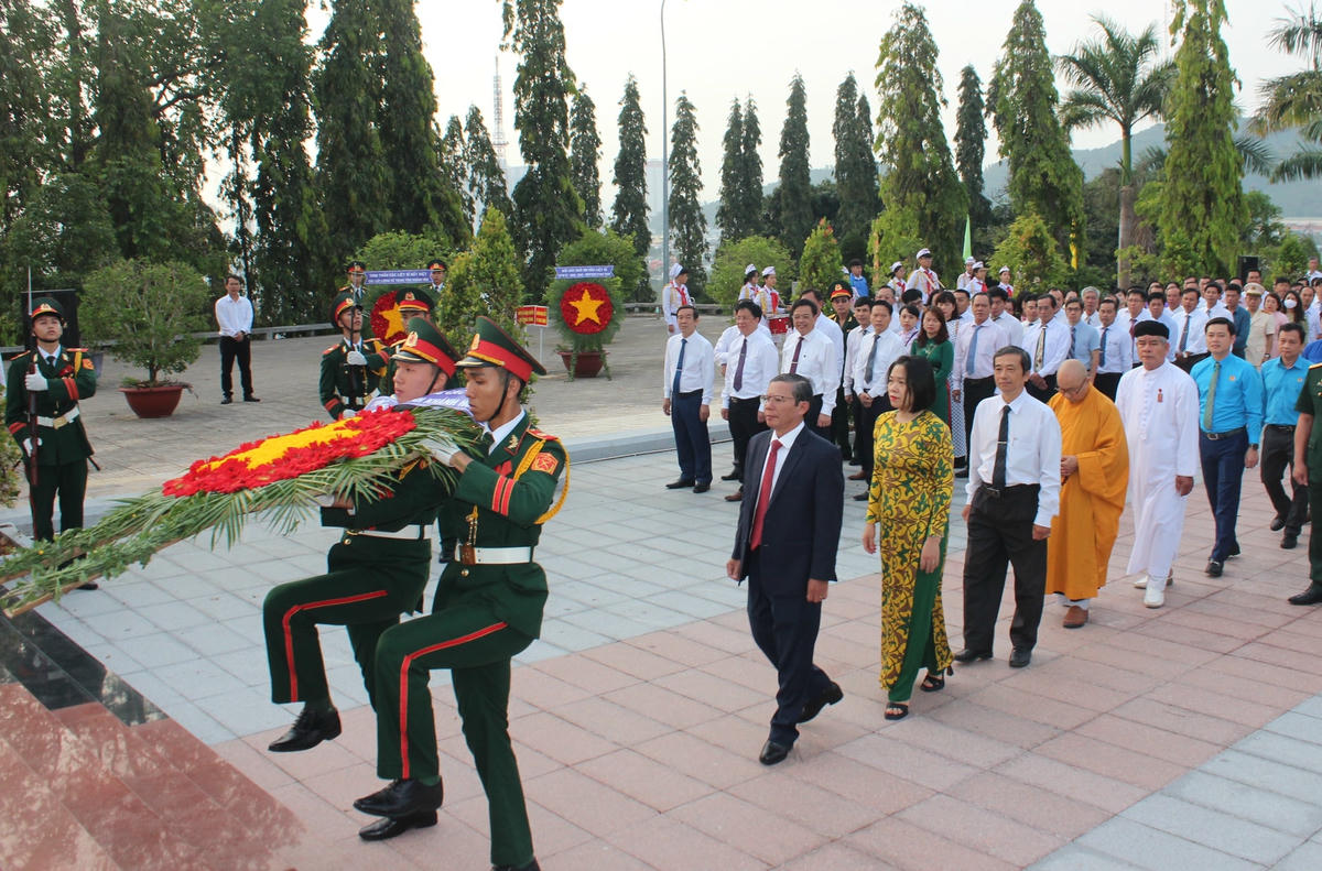 Đoàn đại biểu Ban Chấp hành Đảng bộ tỉnh Khánh Hòa do ông Nguyễn Hải Ninh - Ủy viên Trung ương Đảng, Bí thư Tỉnh ủy dẫn đầu, vòng hoa mang dòng chữ: Đảng, Nhà nước, Nhân dân ghi nhớ công ơn các liệt sĩ; đoàn đại biểu HĐND, UBND tỉnh Khánh Hòa do ông Nguyễn Tấn Tuân - Phó Bí thư Tỉnh ủy, Chủ tịch UBND tỉnh dẫn đầu, vòng hoa mang dòng chữ: Đời đời nhớ ơn các Anh hùng liệt sĩ; đoàn đại biểu Uỷ ban MTTQ Việt Nam tỉnh Khánh Hòa do ông Trần Ngọc Thanh - Chủ tịch Uỷ ban MTTQ Việt Nam tỉnh Khánh Hòa dẫn đầu, vòng hoa mang dòng chữ: Tổ quốc ghi công các liệt sĩ.