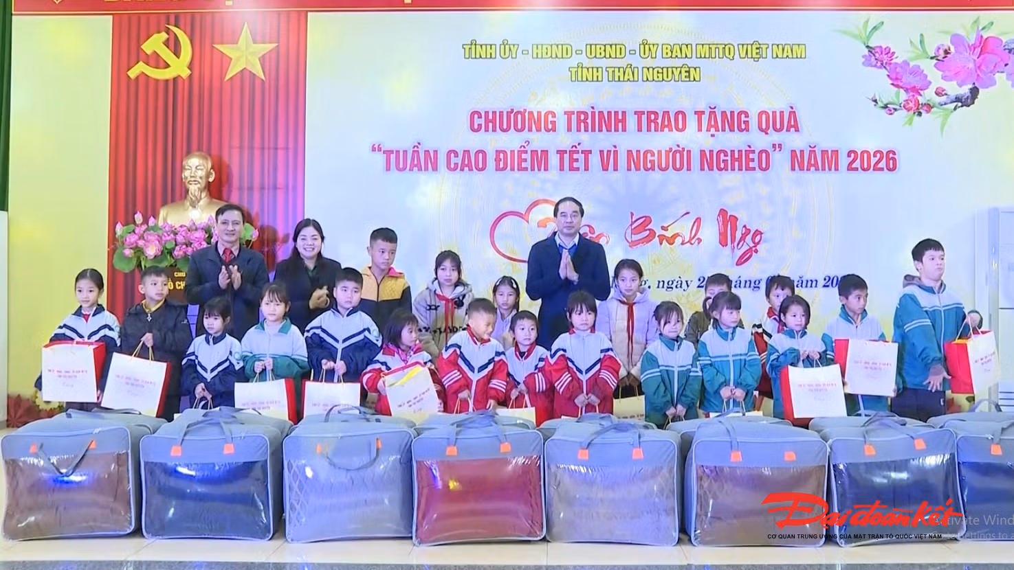 Ngày 27/1, các đoàn công tác của Tỉnh ủy, HĐND, UBND, Ủy ban MTTQ Việt Nam tỉnh Thái Nguyên đã đến thăm, tặng quà các hộ nghèo, gia đình chính sách, học sinh có hoàn cảnh khó khăn trên địa bàn tỉnh, nhân dịp Tuần cao điểm Tết vì người nghèo năm 2026.