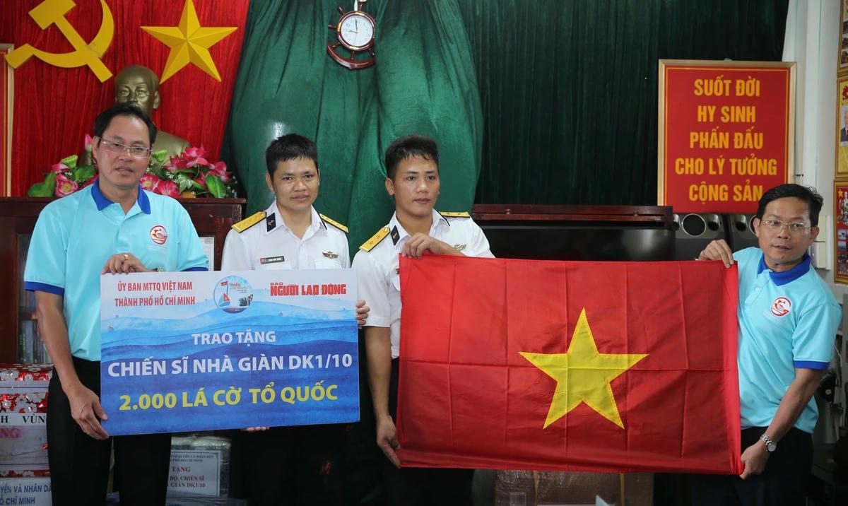 Dịp này, đoàn đại biểu TPHCM tặng quà cho cán bộ chiến sĩ đang làm nhiệm vụ tại Nhà Giàn DK 1/10. Bên cạnh đó, trao tặng máy móc, thiết bị, phương tiện vật dụng sinh hoạt, với trị giá 121 triệu đồng; trao quà cho cán bộ, chiến sĩ tàu 792, tàu KG 23. Báo Người Lao Động trao tặng 20 suất học bổng cho con cán bộ, chiến sĩ học giỏi vượt khó từ chương trình “Học bổng hỗ trợ học sinh, sinh viên dân tộc, học sinh nghèo” và trao tặng 2.000 lá cờ Tổ quốc cho chiến sĩ Nhà Giàn DK 1/10.