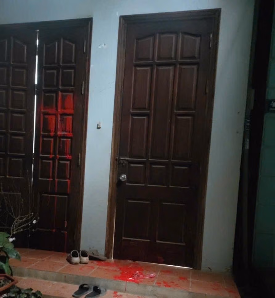 Cụ thể, vào khoảng 1h 30 phút ngày 31/12/2025, do mâu thuẫn cá nhân với một người đàn ông không quen biết, 2 đối tượng Doãn Đình Kiên (SN 1991, trú tại thôn Xuân Khánh, xã Khánh Yên, tỉnh Lào Cai) và Trần Văn Tuấn (SN 1994, trú tại thôn Pắc Xung, xã Khánh Yên, tỉnh Lào Cai) có hành vi ném chất bẩn là sơn trộn mắm tôm vào cửa nhà ông T. với mục đích để trả thù. Cả 2 đối tượng khai nhận, thực tế không có mâu thuẫn với ông T., việc ném chất bẩn vào nhà ông T. là ném nhầm nhà.