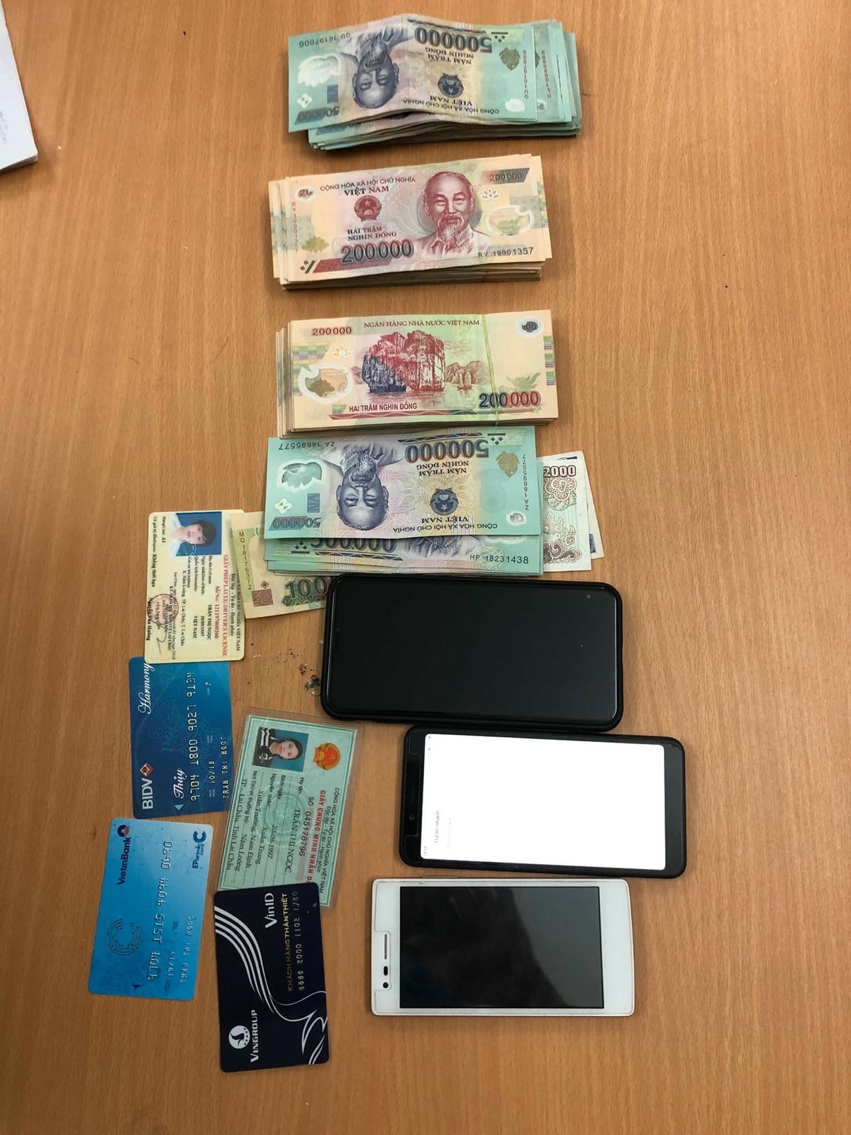Tang vật thu giữ gồm 4 thẻ ATM, 3 điện thoại di động và số tiền trên 100 triệu đồng.