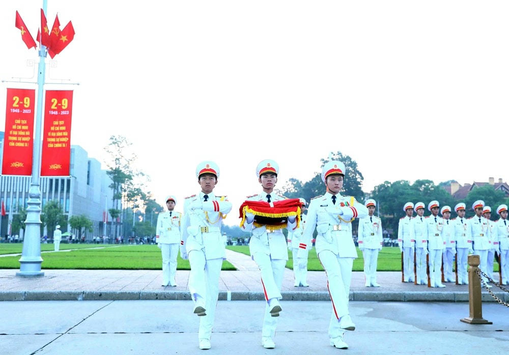 Sáng 31/8, Nghi lễ Thượng cờ được tổ chức trang nghiêm tại Quảng trường Ba Đình lịch sử, nơi cách đây 78 năm Chủ tịch Hồ Chí Minh đọc bản Tuyên ngôn Độc lập, khai sinh nước Việt Nam Dân chủ Cộng hòa.