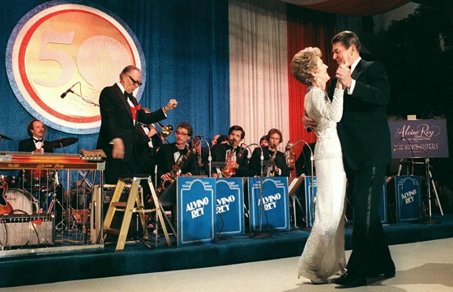 Tổng thống Ronald Reagan khiêu vũ với phu nhân Nancy để ăn mừng ông Reagan tái đắc cử nhiệm kỳ thứ hai tại Washington, ngày 21/1/1985.