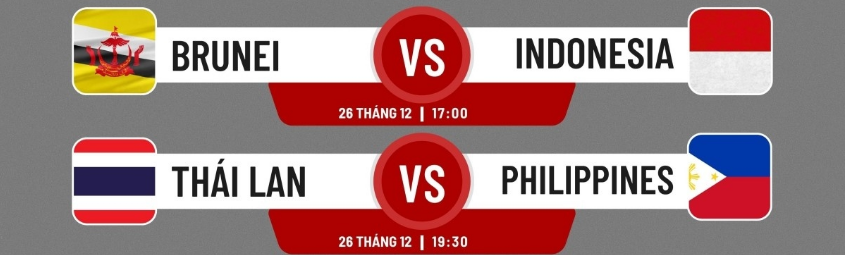 Chiều và tối 26/12, lượt trận thứ 3 bảng A -AFF Cup 2022 sẽ diễn ra. Trên sân nhà Thammasat ở Pathum Thani, ĐKVĐ Thái Lan sẽ có cuộc đọ sức với đối thủ Philippines, trong khi Indonesia sẽ đến làm khách của Brunei.