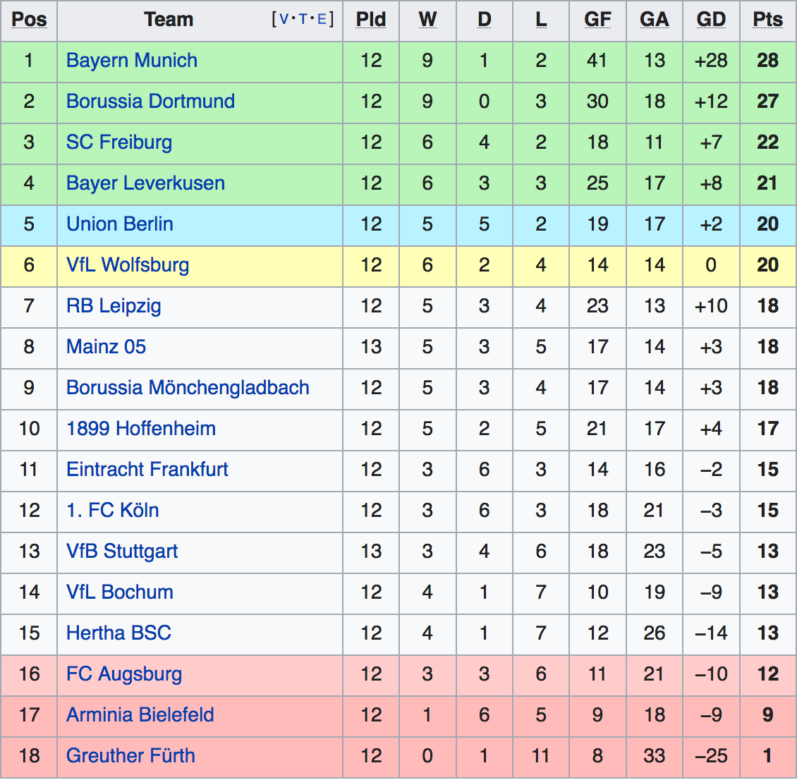 Cuộc đua đầu bảng ở Bundesliga đang diễn ra đầy hấp dẫn sau vòng 12. Đội đầu bảng Bayern Munich quyết thắng đậm Bielefeld tại Allianz Arena để lấy lại danh dự sau thất bại ê chề cuối tuần trước và tạo khoảng cách an toàn với các đối thủ phía sau.