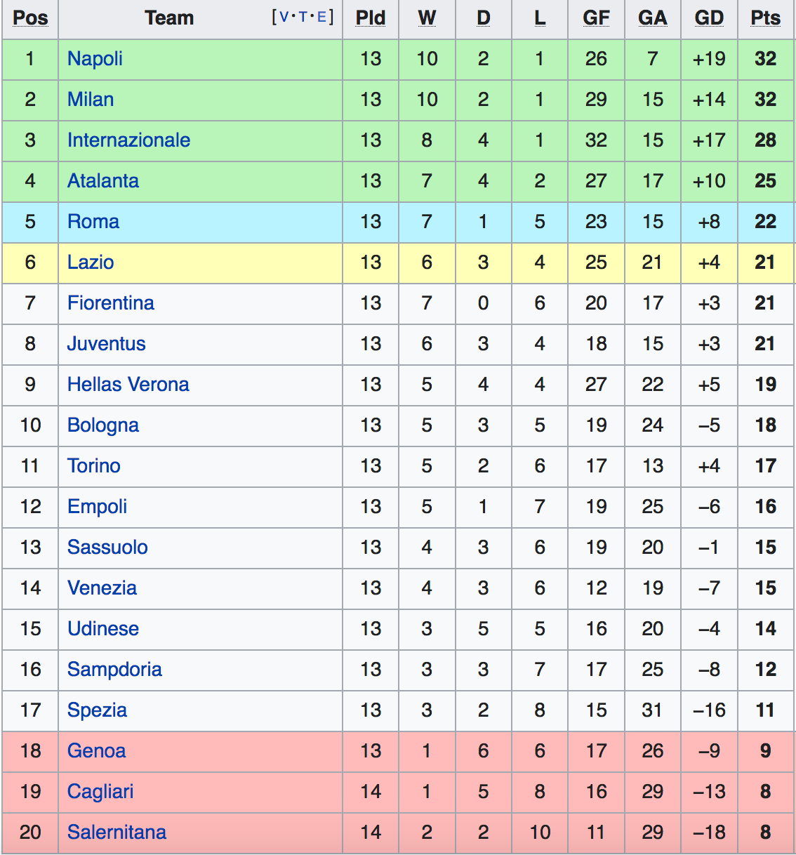 Ở vòng 14 Serie A, Napoli tiếp đón Lazio Roma trên sân nhà San Paolo với mục tiêu 3 điểm để giữ vững ngôi đầu bảng. AC Milan gặp Sassuolo tại San Siro và một chiến thắng là điều mà Rossoneri hướng đến cho mục tiêu vô địch lượt đi.