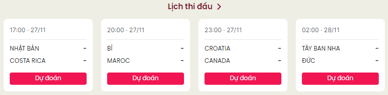 Lịch thi đấu hôm nay (27/11) và Bảng xếp hạng World Cup 2022 mới nhất Chủ Nhật 27/11/2022 09:31 (GMT+7) Lịch thi đấu World Cup 2022 ngày 27/11 và Bảng xếp hạng World Cup 2022 mới nhất diễn ra từ 20/11 đến 19/12 ở Qatar. Nguồn: Dân trí.Nguồn: Thethaovanhoa.vn.