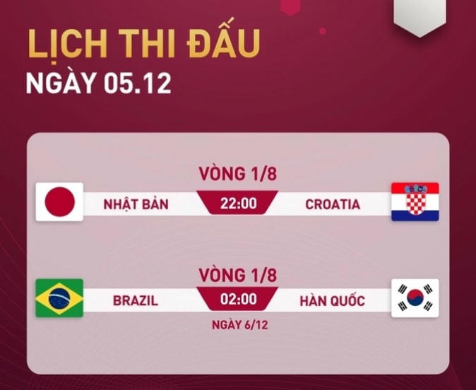 Sau 2 ngày diễn ra các trận đấu của vòng 1/8, World Cup 2022 đã tìm ra 4 đội bóng lọt vào tứ kết, đó là các đội: Argentina, Hà Lan, Pháp và Anh. Trong tối ngày hôm nay (5/12) và rạng sáng ngày 6/12, 2 đại diện bóng đá châu Á là Nhật Bản và Hàn Quốc sẽ đối đầu với Croatia và ứng cử viên vô địch số 1 Brazil. Liệu 2 đại diện châu Á có làm nên lịch sử tại giải đấu lớn nhất hành tinh hay không khi tương quan lực lượng bị đánh giá thấp hơn?