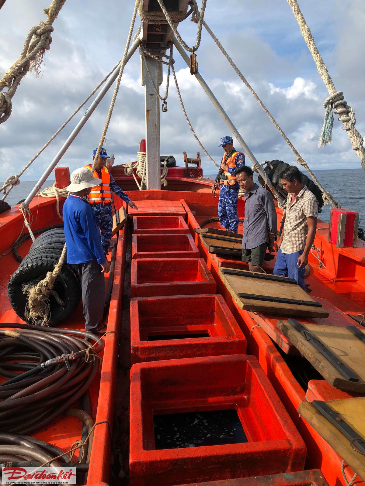 Theo đó, thực hiện kế hoạch trinh sát nắm tình hình trên biển và địa bàn được phân công, chiều ngày 22/9 tại khu vực biển Tây Nam, Tổ Công tác Đoàn trinh sát số 2 đã kiểm tra 2 tàu cá vỏ gỗ mang số hiệu TG 91139TS (gồm 06 thuyền viên do ông Nguyễn Văn Cường,(52 tuổi) thường trú tại Kiên Giang, làm thuyền trưởng) và tàu KG 96097TS (gồm 4 thuyền viên do ông Nguyễn Tiến Lực (55 tuổi) làm thuyền trưởng).