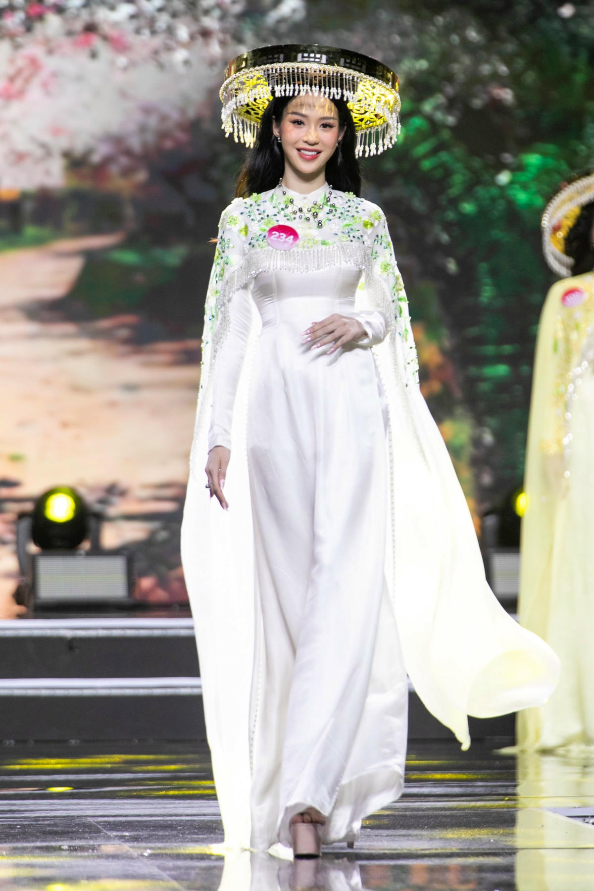 Ngay sau tiết mục mở màn, Top 35 thí sinh bước và phần thi trang phục áo dài. Top 20 thí sinh tiếp tục được gọi tên ngay sau đó. Lê Minh Anh là thí sinh đầu tiên được gọi tên, nhờ chiến thắng phần thi phụ do khán giả bình chọn, với hơn ba triệu lượt phiếu bầu.