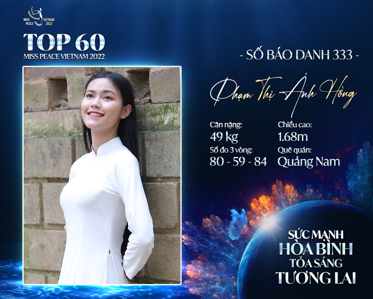 Chương trình Miss Peace Vietnam - Hoa Hậu Hoà Bình Việt Nam 2022 vừa công bố Top 60 thí sinh nổi bật góp mặt ở “Nhà Chung” và đêm Chung Kết tổ chức trong tháng 9 tại thành phố biển Đà Nẵng.