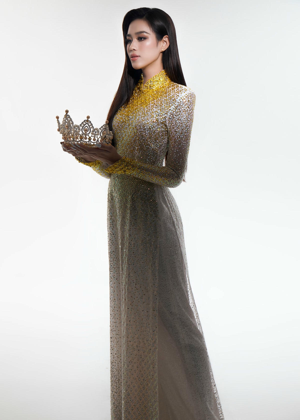 Bên cạnh thiết kế cut-out quyến rũ, Đỗ Hà cũng hé lộ trang phục khi cô trao lại chiếc vương miện cho người kế nhiệm. Nàng hậu chọn tà áo dài truyền thống, biểu tượng cho vẻ đẹp của người con gái Việt Nam.