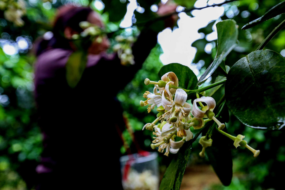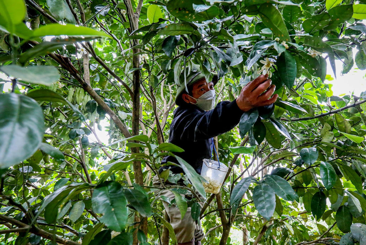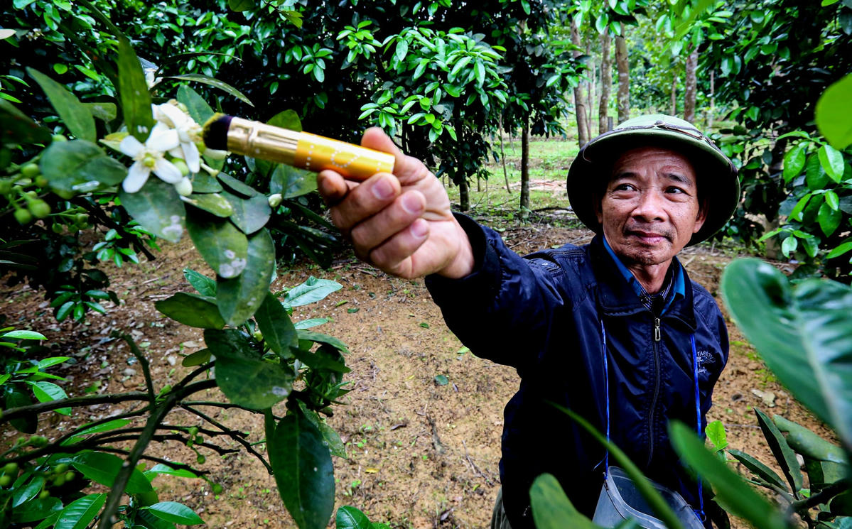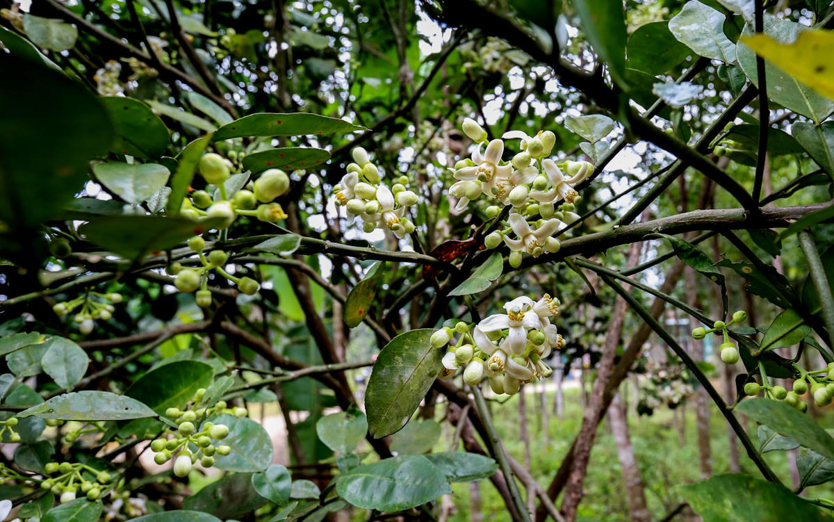 Đầu tháng 3, bưởi Phúc Trạch (huyện Hương Khê, tỉnh Hà Tĩnh) một loại cây ăn quả quý hiếm cấm xuất khẩu giống đang vào mùa bắt đầu ra hoa, nở trắng vườn. Đây cũng là dịp người nông dân vùng này tất bật đi thụ phấn cho từng cây.