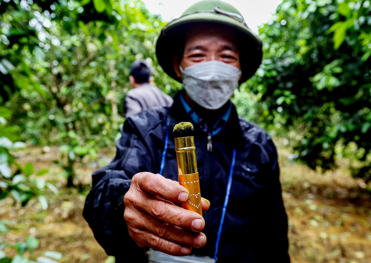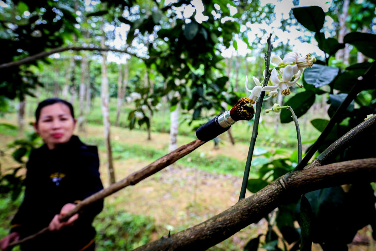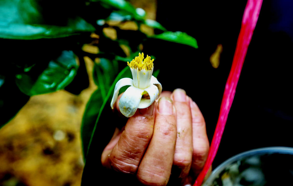 Đầu tháng 3, bưởi Phúc Trạch (huyện Hương Khê, tỉnh Hà Tĩnh) một loại cây ăn quả quý hiếm cấm xuất khẩu giống đang vào mùa bắt đầu ra hoa, nở trắng vườn. Đây cũng là dịp người nông dân vùng này tất bật đi thụ phấn cho từng cây.