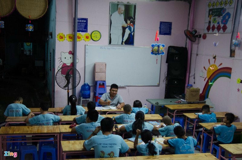 Lớp học tình thương Ngọc Việt đã thành lập được hơn 10 năm. Ban đầu, anh Khải mở lớp này cùng những người bạn của mình với mục đích xóa mù chữ cho các em có điều kiện khó khăn, không được đến trường.