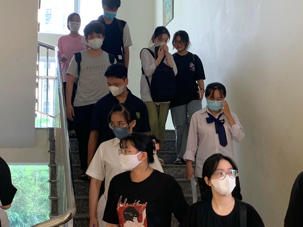 Lưu ý tới các thí sinh, cô Hoa nhấn mạnh không chỉ tại buổi làm thủ tục dự thi, cán bộ coi thi hướng dẫn thí sinh xuất trình Giấy chứng minh nhân dân/Căn cước công dân hoặc Giấy báo dự thi để nhận Thẻ dự thi mà thí sinh phải mang theo Thẻ dự thi và các giấy tờ này trong tất cả các buổi thi. Trường hợp bị mất thẻ Căn cước công dân hoặc các giấy tờ cần thiết khác, phải báo cáo ngay cho Trưởng Điểm thi để xem xét, xử lý.