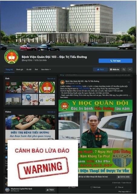 Đại diện Bệnh viện Quân y 103 cho biết, những năm qua, đặc biệt là từ năm 2019 đến nay, bệnh viện nhận được nhiều thông tin phản ánh một số trang web, trang mạng xã hội sử dụng thông tin, hình ảnh, logo hoặc cắt ghép hình ảnh của cán bộ, nhân viên bệnh viện để quảng cáo, bán thuốc, thực phẩm chức năng. Đây là các hành vi mạo danh với mục đích lừa đảo để trục lợi. Đại diện bệnh viện khẳng định không có chủ trương, không tổ chức quảng cáo, giới thiệu, bán bất kỳ loại thuốc, thực phẩm chức năng nào qua internet.