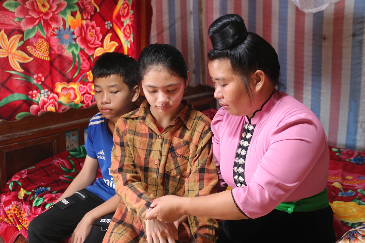 Trò chuyện cùng chị Mai trong căn nhà cũ, chúng tôi được nghe và thấu hiểu về những khó khăn, vất vả của hoàn cảnh gia đình chị. Chồng chị bị tai nạn mất đã 7 năm, chị Mai phải gánh vác tất cả công việc gia đình, một mình chăm sóc hai con nhỏ, cháu lớn bị khuyết tật bẩm sinh, đi lại khó khăn, cháu nhỏ sức khỏe yếu, thường xuyên đau ốm, bệnh tật. Khó khăn chồng chất khó khăn, hằng ngày chị Mai phải di chuyển một quãng đường xa, đi lại hiểm trở để làm thuê kiếm thêm thu nhập chăm lo cho gia đình. Kết thúc công việc, chị lại quay trở lại đưa đón con đi học.