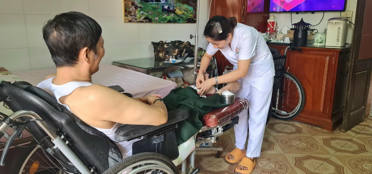 Trò chuyện với các nhân viên điều dưỡng, hộ lý ở đây mới hay chăm sóc sức khỏe thể chất, tinh thần cho các thương binh ngay tại Trung tâm chỉ là một phần công việc của họ. Theo điều dưỡng Nguyễn Thị Hằng - Phó phòng Y tế của Trung tâm, ngoài thương tật nặng, các thương binh ở đây hầu hết tuổi đã cao, có nhiều bệnh nền nên Trung tâm thường xuyên phải đưa lên các bệnh viện ở Hà Nội để điều trị dài ngày, theo chế độ chung là 21 ngày. Mỗi lần như vậy thì các nhân viên y tế của Trung tâm phải thay nhau đi theo để chăm sóc các thương binh.