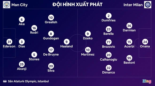 Theo Dân Trí, Man City và Inter Milan bước vào trận chung kết Champions League với sự thận trọng cao, cả hai đội đều ưu tiên mặt trận phòng thủ. Do triển khai tấn công với tốc độ chỉ ở mức trung bình nên không tạo ra sự đột biến, vì vậy hai đội đều không có nhiều cơ hội dứt điểm về phía cầu môn của nhau.