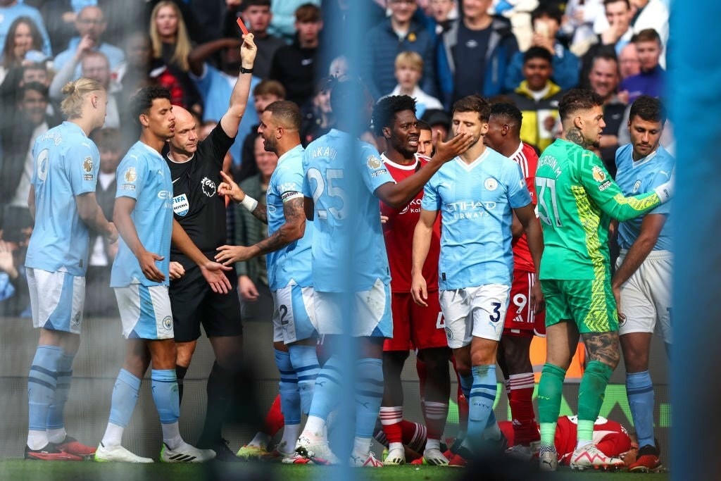 Theo Vnexpress, đầu hiệp hai, những màn khích bác nhau giữa cầu thủ hai đội trở thành pha xô xát giữa Rodri và Morgan Gibbs-White. Kết quả, tiền vệ Man City nhận thẻ đỏ trực tiếp vì lỗi đánh nguội. Rodri phản đối, cho rằng Gibbs-White đóng kịch. Nhưng sau khi xem lại VAR, trọng tài Anthony Taylor không giảm án.