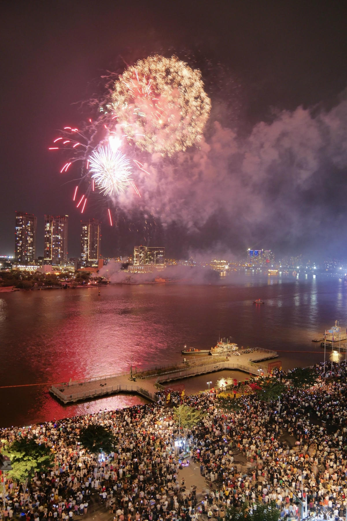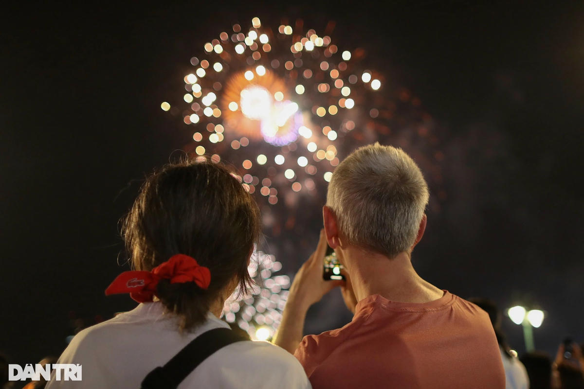 Hàng ngàn người dân vỗ tay tán thưởng, dùng điện thoại ghi lại những khoảnh khắc pháo hoa rực rỡ chào đón năm mới 2023 trên bầu trời TP HCM.